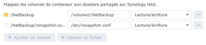 Dans mon exemple, tout est sous /volume1/NetBackup